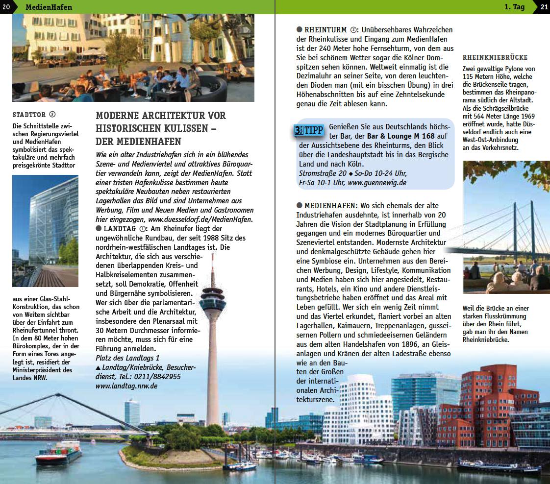 The texts and images on our website are to help you get your bearings and plan your trip to Düsseldorf. All information has been carefully researched by the 3-Days-in editorial team and continually updated. Nevertheless, it is possible that individual details are incomplete or out of date. We are therefore grateful for every correction or addition to our information. Please send your hints to: info@3-tage-in.de