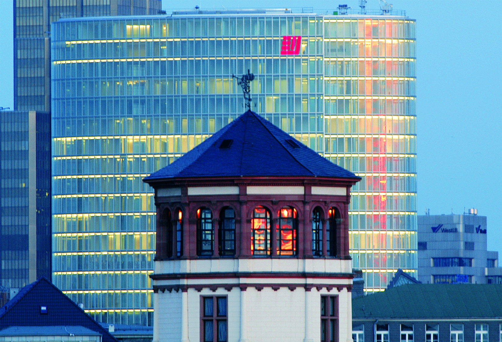 Stroll along the Rhine-bank promenade towards the Landtag (regional parliament) and Media HabourPassing Pegeluhr and KIT, the spectacular exhibition hall for contemporary art below the banks of the Rhine, you come to the former industrial port, where modern architecture and listed buildings enter into a genuine symbiosis. Companies from the fields of advertising, design, lifestyle, communication and media have settled there, restaurants, hotels, a cinema theatre and several other service providers  have filled the area with vibrant life.The unmistakable landmark on the Rhine is the3 240-metre-high Rheinturm, which also marks the entrance to the Media Harbour. On a day with clear wether you can see the spires of Cologne Cathedral from its revolving restaurant.